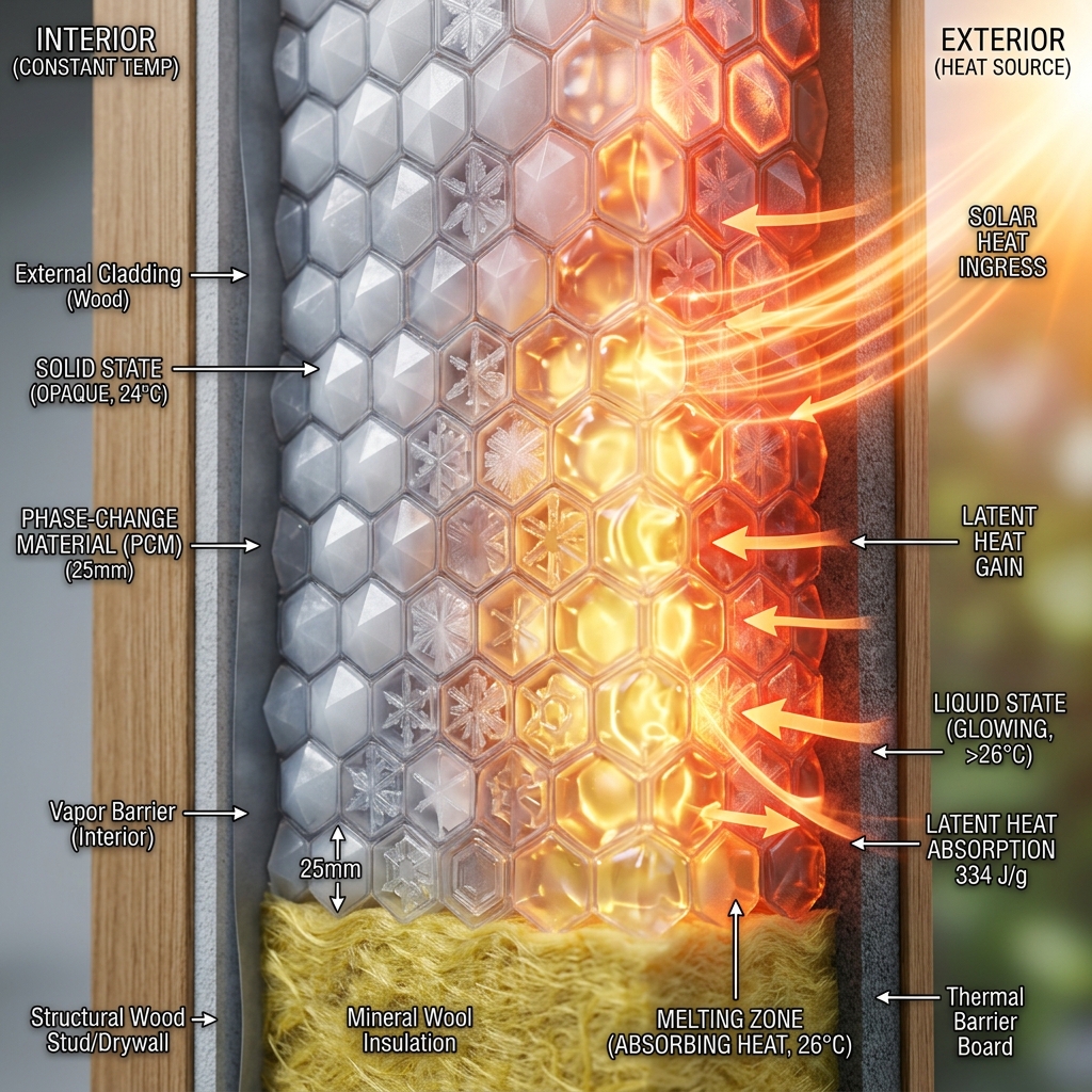 - The Release: When the temperature drops at night, the PCM solidifies, releasing that stored heat back into the room.
